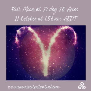 Full Moon in Aries, 21 October 2021 Your Soul Potential Posted on December 1, 2021 by JanetteDecember 1, 2021 The fiery Aries full Moon opposes the Sun in Libra conjunct (next to) the planet Mars, ruler of Aries. This full moon is about standing in your sovereignty and taking action.
